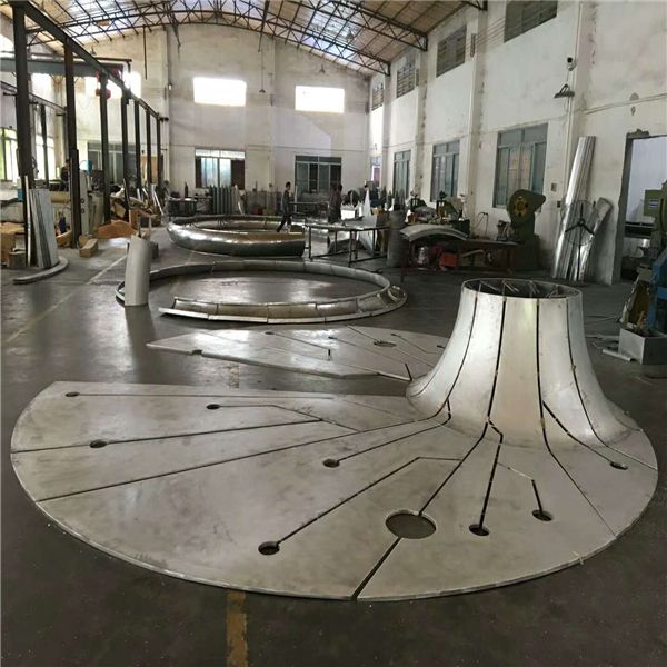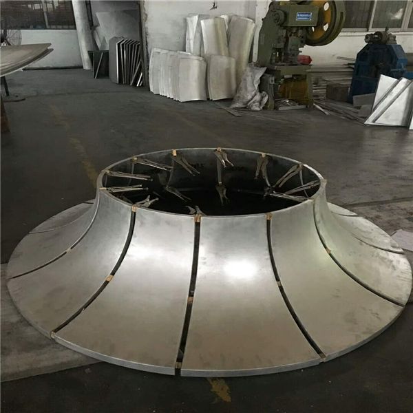 6、雙曲鋁單板安裝施工方便快捷。鋁板在工廠成型,施工現(xiàn)場(chǎng)不需裁切,固定在骨架上即可。